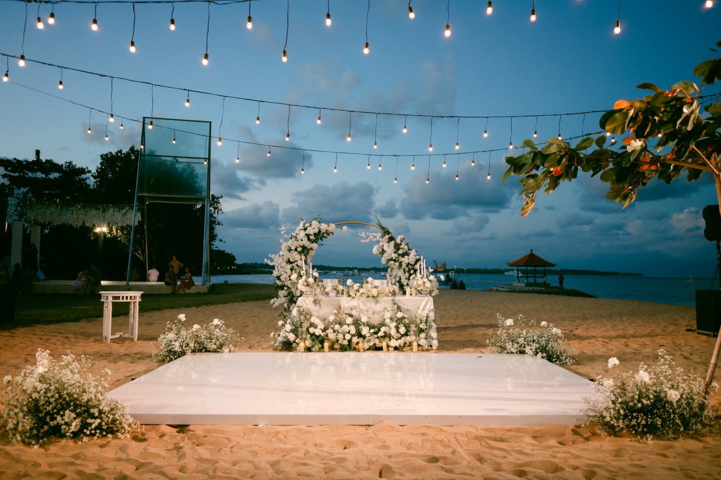 Tanaman hijau tidak hanya mempercantik dekorasi, tetapi juga menciptakan suasana menenangkan dan alami. Ini sangat cocok untuk pernikahan outdoor, seperti di pantai, villa, atau taman. - Fotogenik dan Abadi