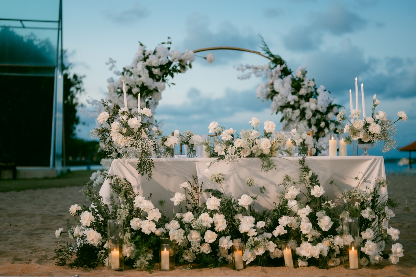 Tidak peduli tren dekorasi pernikahan berubah setiap tahunnya, kombinasi bunga putih dan hijau selalu terlihat elegan dan segar. Warna putih menyimbolkan kesucian cinta, sementara hijau menambahkan unsur kehidupan dan kesejukan. Hasilnya adalah dekorasi yang timeless, fotogenik, dan menghadirkan suasana romantis sepanjang acara.
