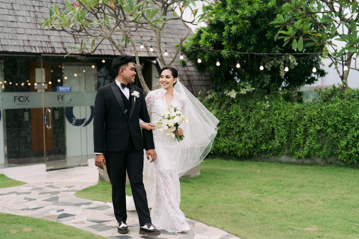 Picture this: the soft Balinese sky meets an endless ocean horizon, and the air is sweet with the scent of fresh roses, tulips, and a touch of salt. That’s the magic we found at Marviecx & Vilia’s stunning modern-chic wedding at FOX Hotel Jimbaran Beach. The entire aesthetic, a seamless blend of natural beauty and curated elegance, was a vision to behold, set against the backdrop of the stunning infinity pool deck.
