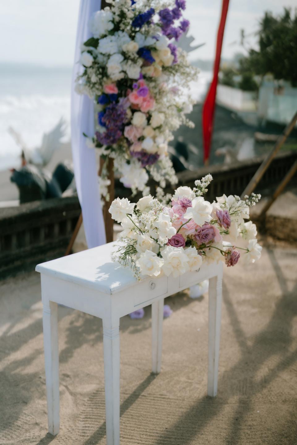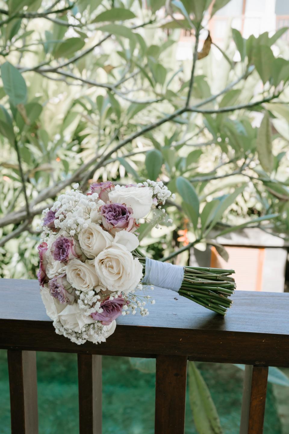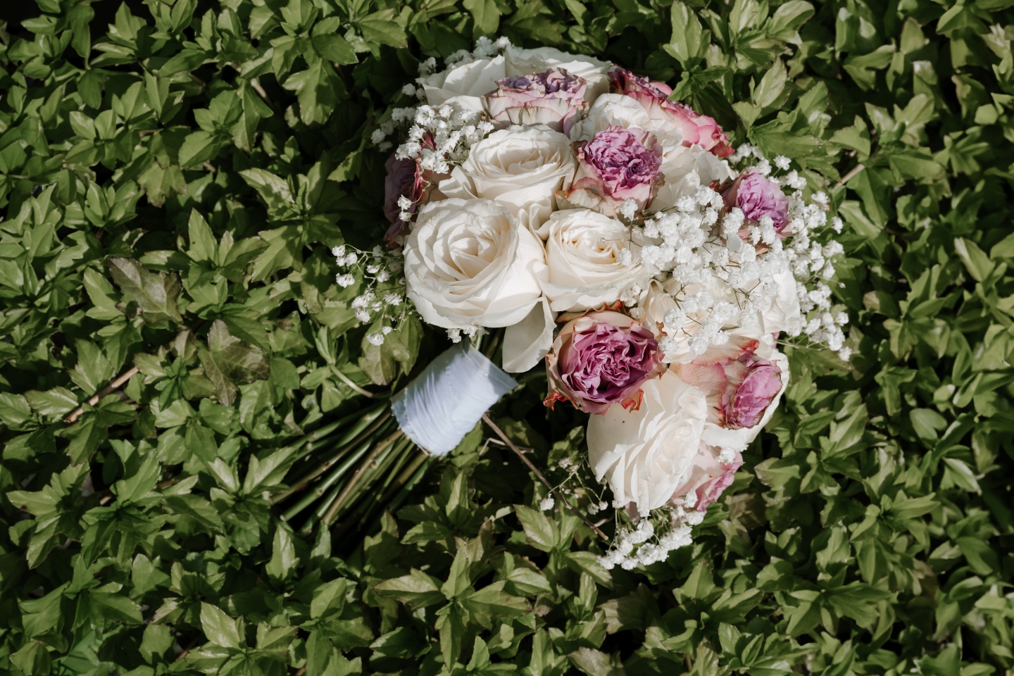- Mix and match: Deep purple roses with white roses, purple lisianthus with baby's breath, or purple orchids with white calla lilies.