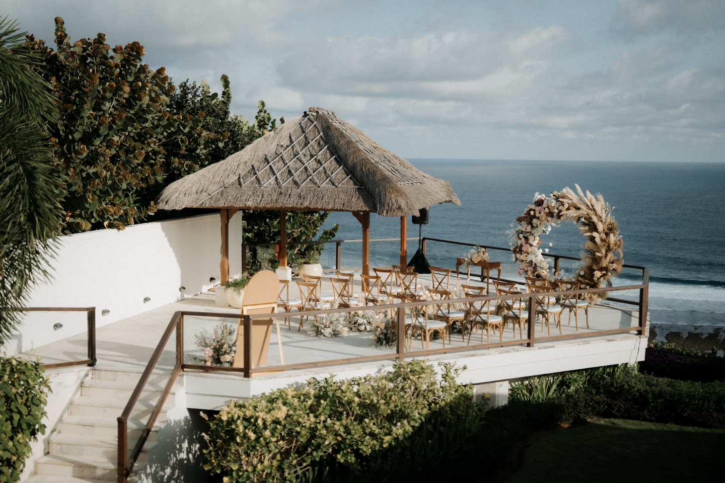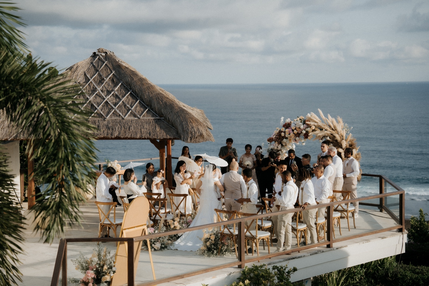 Mike and Inri’s wedding proves that you don't need to compete with Bali's scenery—you need to frame it. By combining rustic textures (pampas) with soft lighting and classic bridal elements, they achieved a wedding look that is both Instagram-worthy and emotionally resonant.