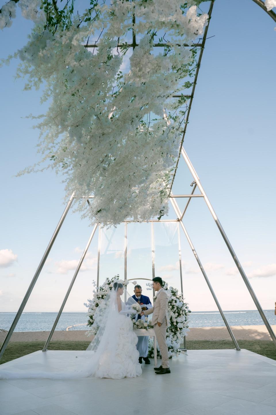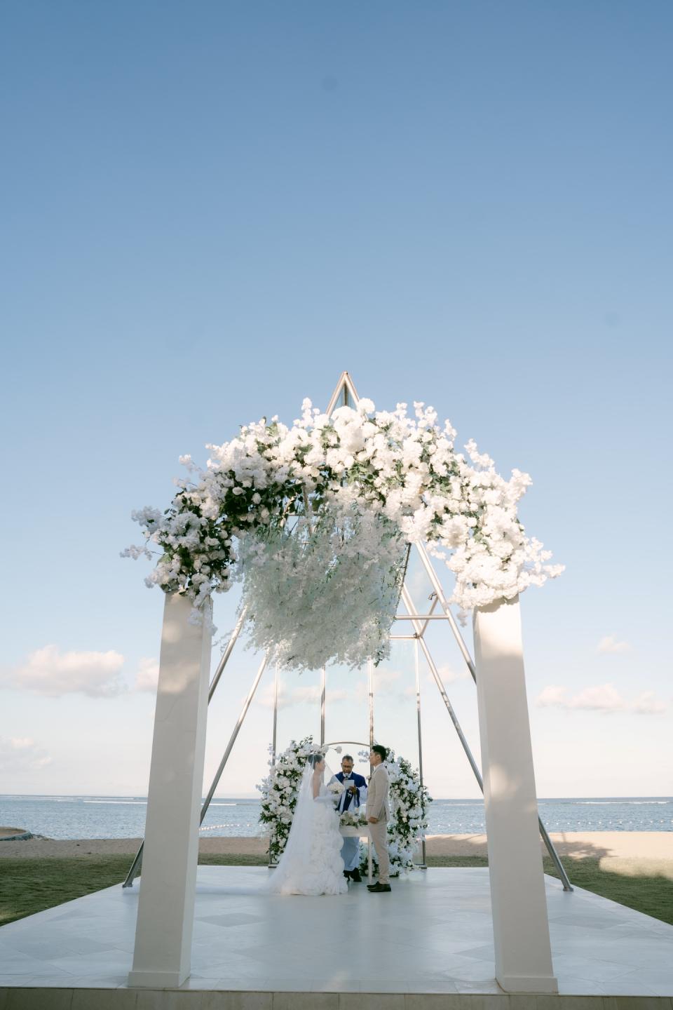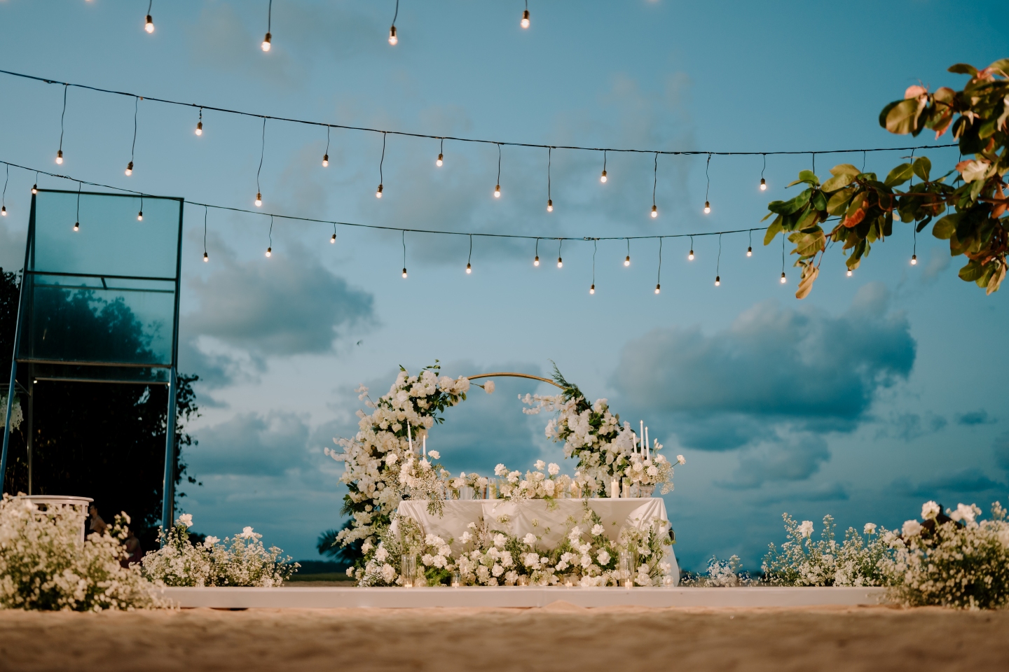 Tanaman hijau tidak hanya mempercantik dekorasi, tetapi juga menciptakan suasana menenangkan dan alami. Ini sangat cocok untuk pernikahan outdoor, seperti di pantai, villa, atau taman. - Fotogenik dan Abadi