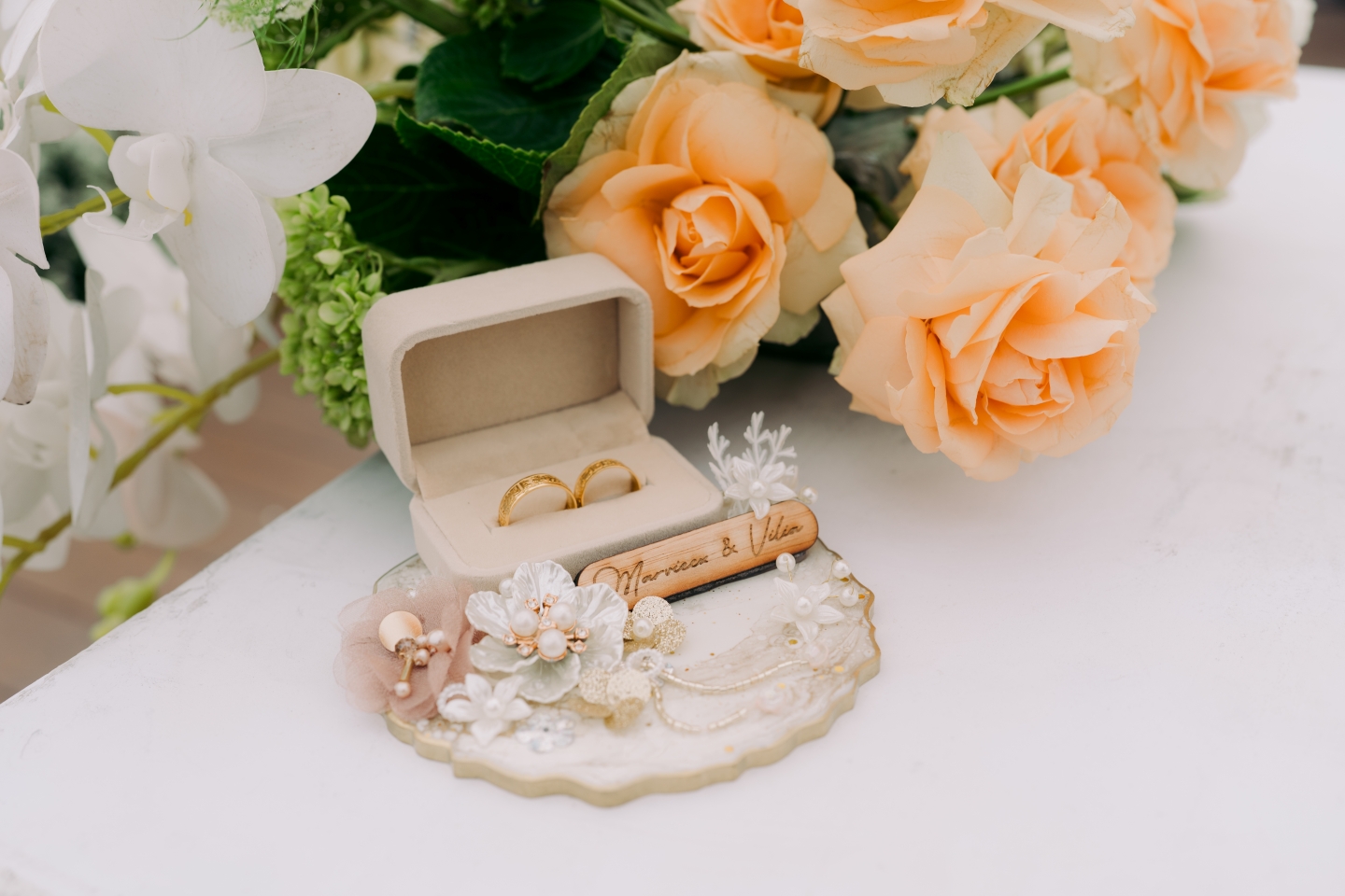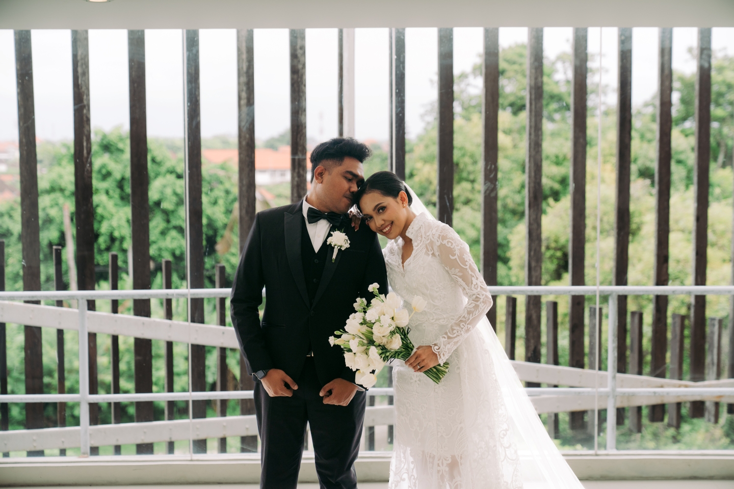 Picture this: the soft Balinese sky meets an endless ocean horizon, and the air is sweet with the scent of fresh roses, tulips, and a touch of salt. That’s the magic we found at Marviecx & Vilia’s stunning modern-chic wedding at FOX Hotel Jimbaran Beach. The entire aesthetic, a seamless blend of natural beauty and curated elegance, was a vision to behold, set against the backdrop of the stunning infinity pool deck.