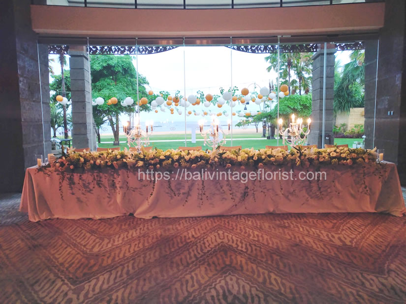 Gambelan ball room located by the beach, this venue is quite popular for an indoor backup due to still have a sea view eventhough during rain season. The ball room Gambelan can accomodate around 150 sitting dinner.