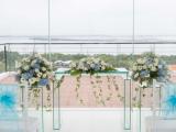 Blue Hydrangea and Rose Altar Centerpiece